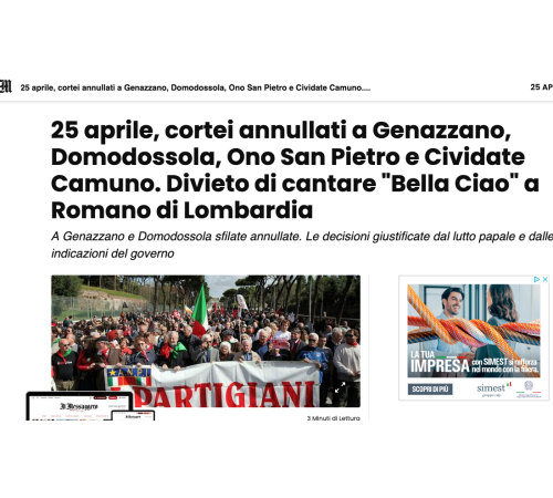 DOMODOSSOLA - 24-4-2025 -- Finisce sui media nazionali,
