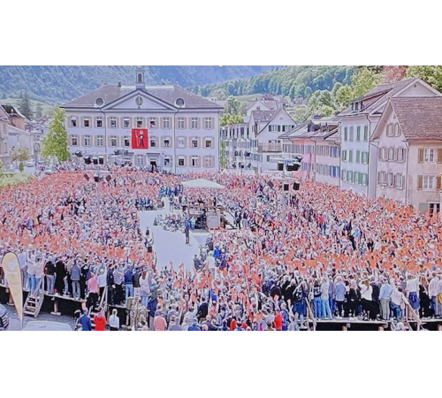 BERNA - 6-5-2025 -- Alla «Landsgemeinde» (l’Assemblea di tutti cittadini nella piazza centrale) di domenica a Glarona (Glarus), che ha registrato un’ottima affluenza: Cittadini donne, uomini ed i giovani dai 16 anni in su, hanno approvato con un voto «per alzata di mano» tre proposte per il potenziamento dei trasporti pubblici: