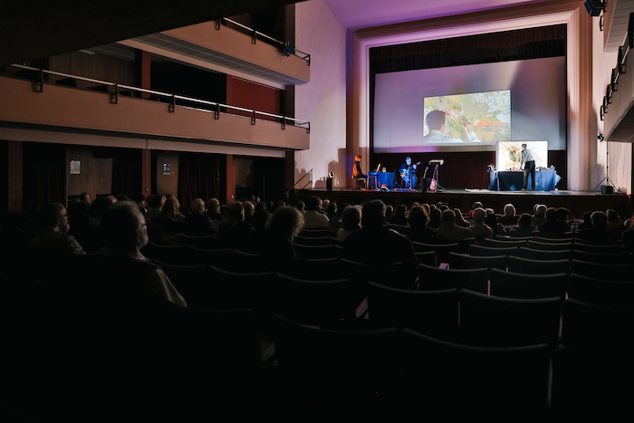 Una platea attenta e partecipe ha applaudito per oltre un’ora una performance dal vivo intensa e raffinata, che ha celebrato la contaminazione tra le arti in un contesto suggestivo come quello del rinnovato Cinema Corso. A fine serata, Paolo Zanghieri, tra i promotori del rilancio della struttura, ha ricordato il progetto “PERCORSO”, che mira a fare del cinema un polo culturale multifunzionale aperto a musica, teatro e progetti come Malescorto.