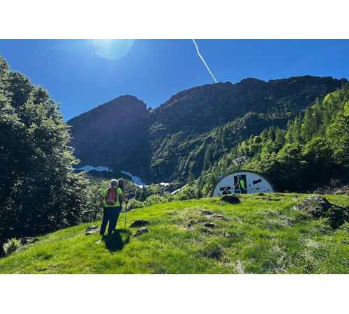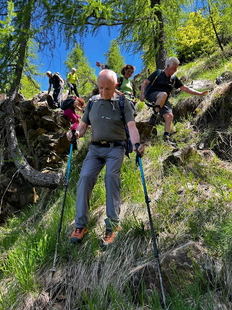Ad occidente splendono i Quattromila. In tre quarti d’ora ridiscendiamo a L’Alpino per pranzare sui comodi tavoli. Con tutta calma, in un’ora e mezza, torniamo alle auto lungo il percorso di salita. Al bar di Malesco chiudiamo in bellezza la giornata.