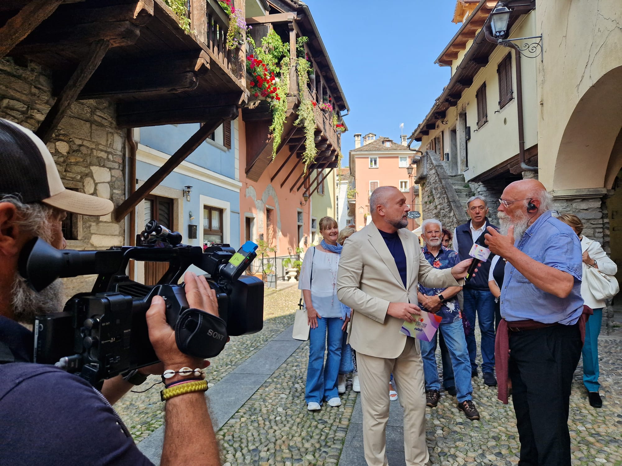 DOMODOSSOLA - 11-6-2025 -- Domodossola è sbarcata questa mattina sulla rete ammiraglia Rai, nella popolare trasmissione “Uno Mattina” condotta in studio da Alessandro Greco e Carolina Rey. L’inviato Rai Massimo Tosi ha aperto il primo collegamento da Piazza Mercato accompagnato dalle donne in costume del Gruppo Folk e dagli studenti dell’Università della terza età, cantando tutti insieme la canzone della D come Domodossola. Nel secondo collegamento, nel quartiere Motta, lo storico Enrico Rizzi ha spiegato la storia del borgo medievale. La troupe e gli accompagnatori sono saliti fino al Sacro Monte Calvario di Domodossola, dove erano attesi da Antonio Pagani, consigliere regionale dell’Ente Parchi Sacri Monti. Infine, l’ultima diretta è stata girata nuovamente in Piazza Mercato, per un aperitivo con i prodotti tipici del territorio. Qui Alessandro Prina ha parlato in veste di docente dell’istituto agrario Fobelli di Crodo – che sta riscoprendo tutte le nostre eccellenze – e di componente della Condotta Slow Food Valle Ossola. «Una bella occasione per farci conoscere in tutta Italia» commenta Vanda Cecchetti, presidente della Pro Loco di Domodossola. L’unica nota stonata, i camioncini del mercato, presenti nel salotto cittadino anche nel giorno in cui la piazza era in diretta nazionale!