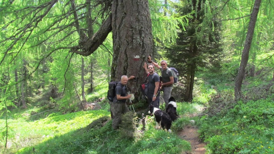Ci troviamo a Baceno, per l'ormai tradizionale caffè, in una bellissima giornata, tranquillizzati dalle previsioni che danno un'improbabile pioggerella solo nella tarda serata. Siamo quindici. Una gentile signora ed un giovane, oggi in ferie, abbassano la solita età media elevata. Sono anche presenti i quattro cani (parlo di quelli che abbaiano) ammessi nel gruppo. In località Chioso imbocchiamo la strada per Vova e parcheggiamo in prossimità della sbarra, a quota 900 circa.