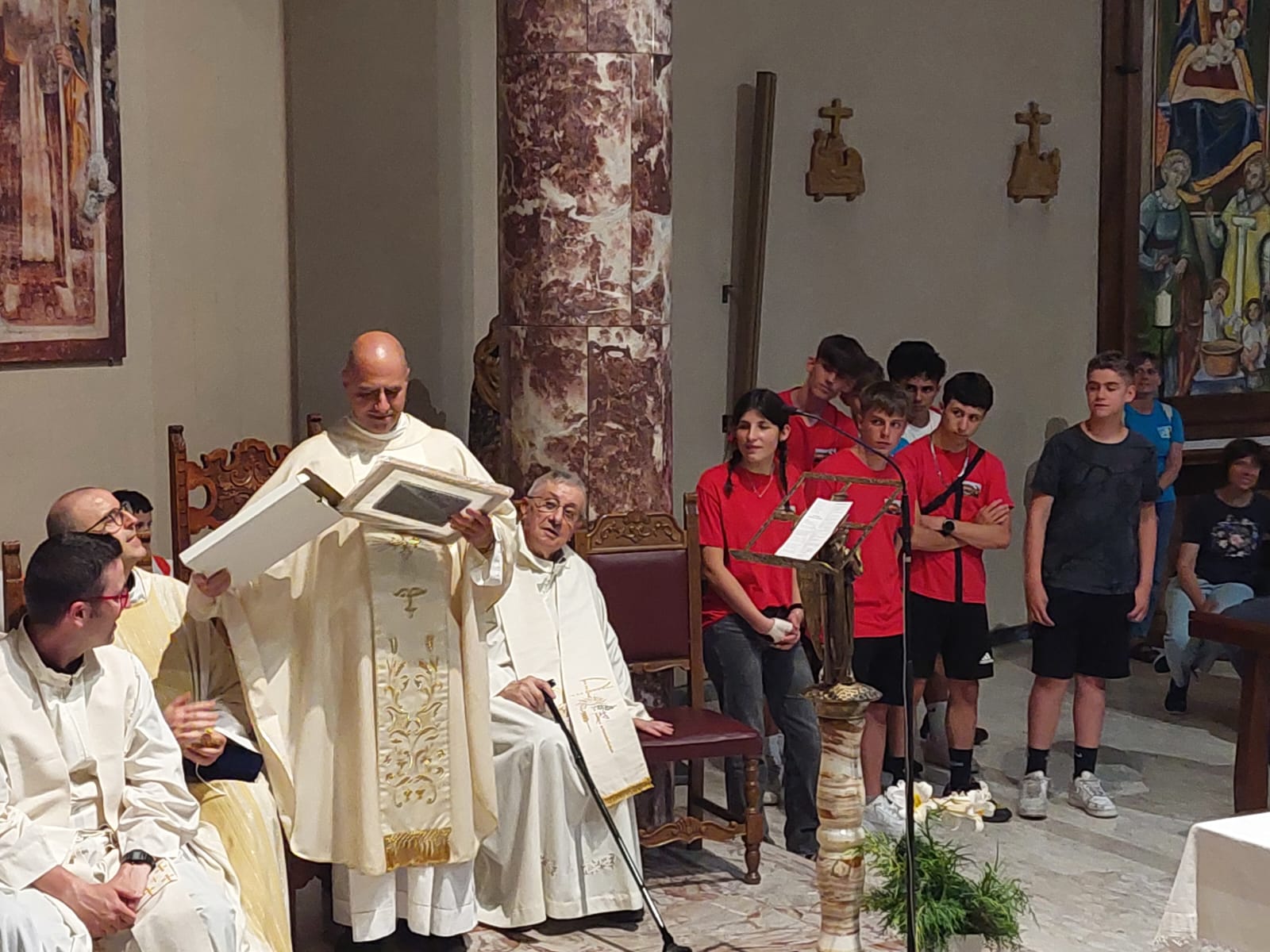 TRONTANO - 18-6-2025 -- Sembrava Natale ieri sera a Cosasca, tanto era gremita la chiesa parrocchiale di San Giuseppe lavoratore. L’occasione era il trentennale di sacerdozio del Parroco, don Paolo Cavagna. A festeggiarlo con lui un amico fraterno, don Giuseppe Ottina, oggi coadiutore a Domodossola, ordinato prete anch’egli tre decenni fa. A concelebrare la Messa con i due festeggiati sono giunti il Vicario episcopale don Luigi Preioni, parroco a Masera, don Vincenzo Barone, Parroco di Domodossola insieme al coadiutore don Alessandro Maffioli e a don Gabriele Romagnoli, che con la parrocchia dei Santi Gervaso e Protaso collabora, don Lorenzo Armano, coadiutore delle parrocchie della Valle Anzasca, don Massimo Bottarel, Parroco di Villadossola, don Franco Belloni, ora parroco a San Pietro Mosezzo ma per lunghi anni guida della parrocchia novarese della Madonna Pellegrina, in cui è maturata la vocazione di don Paolo. Erano presenti tutte le realtà con cui don Cavagna è a contatto: i sindaci di Beura Cardezza, Davide Carigi, di Trontano, Renzo Viscardi, oltre a Venanzio Tabachi, in rappresentanza dell’Amministrazione comunale di Vogogna. La frazione Prata infatti è una delle numerose parrocchie rette da don Paolo. Ad omaggiare il sacerdote c’era una rappresentanza dell’Associazione Nazionale Carabinieri, il gruppo folkloristico delle Donne del Parco di Trontano e Cosasca, il gruppo “Le Stciupatell” di Beura, Cardezza e Cuzzego. Ai due sacerdoti sono state regalate altrettante targhe ricordo, portate da gruppi di giovani delle rispettive parrocchie; da Beura è arrivata, in una scatola a colori vivaci, un’offerta a don Paolo per l’acquisto di una nuova auto. Un applauso è scoppiato anche nel bel mezzo della Messa, quando la sua voce si è bloccata per qualche istante a causa della commozione. Al termine della concelebrazione abbiamo realizzato la videointervista che segue a don Paolo e don Giuseppe.