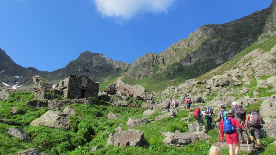 Quasi tutti gli ombrelli restano al campo base, nonostante la “lavata” della scorsa settimana. Dal parcheggio ad ingresso paese scendiamo ad attraversare il torrente e imbocchiamo verso sud est una traccia di pista gippabile, seguita da un bel sentiero, che ci conduce in meno di tre quarti d’ora all'Alpe Pennino Grande, 1498. Due foto e si vira decisamente a sud verso l'Alpe La Balma, 1671, che raggiungiamo in dolce salita. E' piacevole incontrare bovini, ovini ed equini, oltre a qualche ungulato in lontananza.