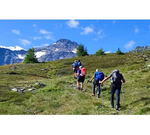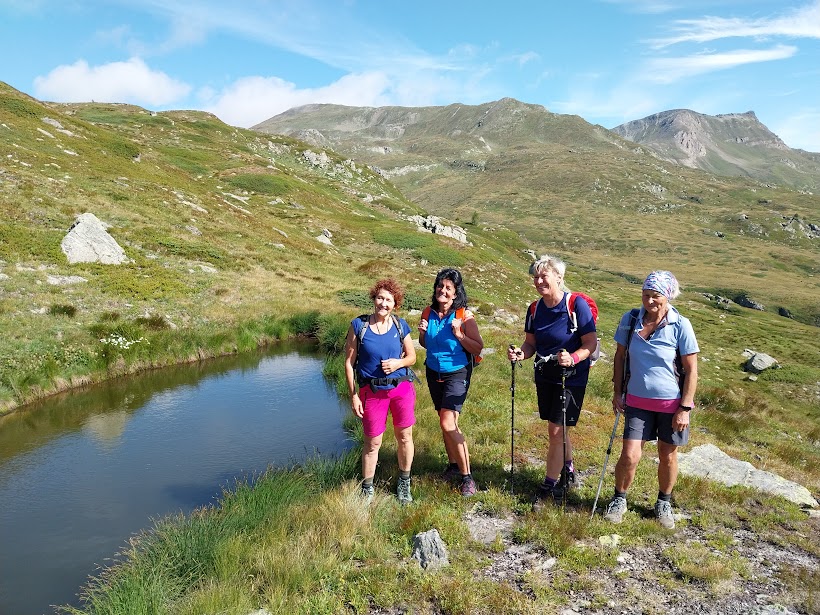 Dopo pochi minuti ci fermiamo in riva al laghetto più alto, 2580, per il pranzo. Soddisfatti di una laboriosa foto di gruppo, scendiamo al più grande dei laghi, 2431, lo costeggiamo e passiamo dai residui di quello più in basso, praticamente cancellato dal crollo di un tratto di morena, tanti anni fa, in modo simile a ciò che avvenne al Lago delle Locce nel 1979, a Macugnaga. La discesa sul sentiero evidente e da percorrere con attenzione nel tratto che costeggia la bella cascata ci porta a Chusmatte, 1810, ed alle auto ad Engiloch in due ore e mezza da Sirwoltesattel.