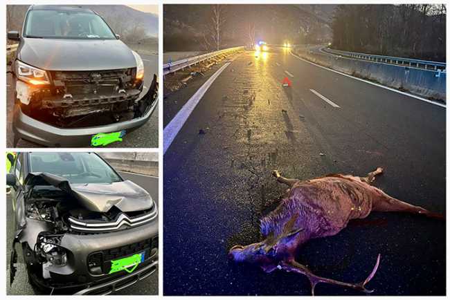 PIEDIMULERA- 14-12-2025-- Incidente tra un'auto e un grosso cervo maschio