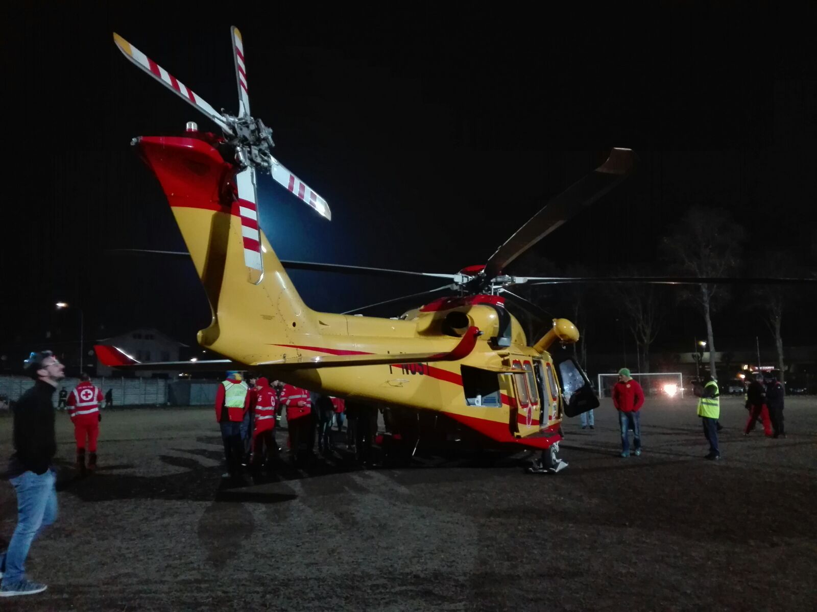dovuto ad una deviazione al Sestriere per recuperare un ferito e portarlo in ospedale al Regina Margherita a Torino, è atterrato presso la nuova base operativa al campo sportivo Nosere in Domodossola, provvisoriamente messa a disposizione, l'elicottero del Servizio HEMS 118, l'unico del Piemonte abilitato al volo notturno. Presenti diversi esponenti dei reparti militari e della Croce Rossa domesi, e l'assessore Franco Falciola.