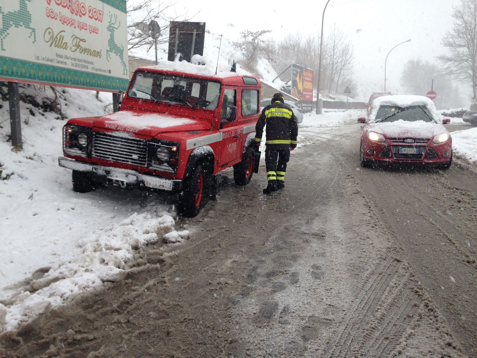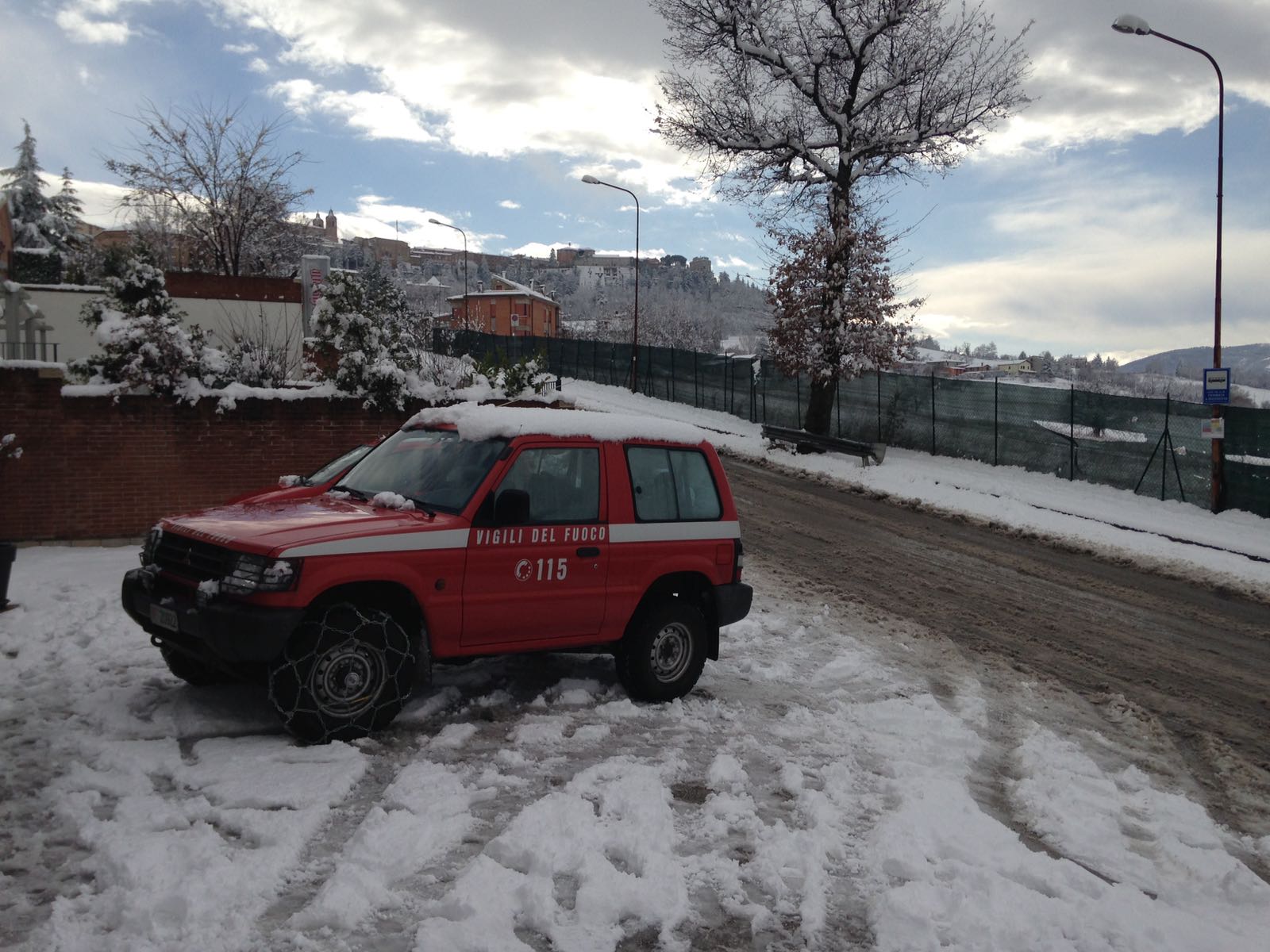 in queste ore a Camerino, nella zona terremotata in provincia di Macerata. Disagi per il traffico, e catenati anche i mezzi dei vigili del fuoco domesi che giovedì hanno dato il cambio alla squadra composta da quattro volontari di Verbania che ha lavorato questa settimana.