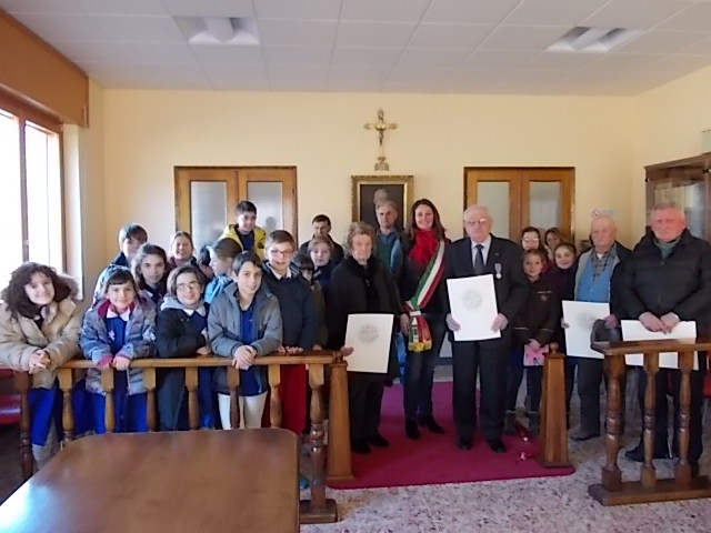 MONTECRESTESE- 16-01-2017- Poco prima di Natale presso la sala consiliare di Montecrestese si è tenuto un incontro tra le classi della scuola primaria di Montecrestese e quattro cittadini insigniti il 25 aprile 2016 della “Medaglia della Liberazione”, consegnata a Verbania in occasione del 70° anniversario della Liberazione, cui in rappresentanza del comune aveva preso parte la sindaca Silvia Miguidi: “Nel 2016- si spiega dall'amministrazione- sono giunti gli attestati ministeriali ed il comune ha voluto cogliere l’occasione per dare ufficialità a questo riconoscimento civile che fa onore alla nostra Comunità ed insieme per fare incontrare due generazioni così distanti tra loro, non solo per ragioni anagrafiche ma anche per le scelte e le vicissitudini storiche che le contraddistinguono. Ringraziamo dunque vivamente i signori Angelo Amigliarini, Samuele Baiardi, Luigi Fovanna e la signora Adelina Molini, vedova di Giuseppe Tanferani, per averci onorato della loro presenza ed aver dato la loro disponibilità a ritirare l’attestato in presenza delle bambine e dei bambini della nostra Primaria. Un ringraziamento va anche alle docenti della nostra scuola, sempre pronte a cogliere tutti gli stimoli utili alla crescita civile delle nostre classi. L’incontro è stato scandito da domande e ragionamenti che non hanno certo lasciato indifferenti, né minori né adulti”.