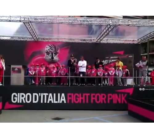 Vestiti di rosa e con il cappellino di uno degli sponsor del concorso, i bambini e le bambine ossolani sono saliti sul palco alle 8,10 di mattina nel primo evento della tappa di Gravellona. Il deejay Andreino di Rds e lo speaker ufficiale del Giro Stefano Bertolotti li hanno invitati a salire sul palco insieme al commissario capo della polizia stradale Eugenia Sepe. Prima è toccato agli alunni di Piedimulera (vedi il video), poi ai colleghi di Ornavasso (video).