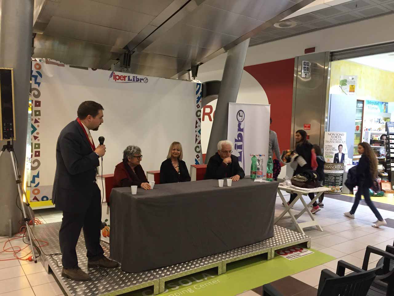 molto gratificante è quello che si è appena concluso nei centri commerciali ossolani, grazie ad IperLibro, la manifestazione che "porta la cultura in luoghi inaspettati". Venerdì 10 marzo gli appuntamenti hanno avuto un target ben preciso: bambini e scuole. Alla mattina Luca Ciurleo e Samuel Piana hanno presentato il libro Ciboland ai ragazzi del Formont di Villadossola all’interno del supermercato cittadino, mentre nel pomeriggio, al supermercato coop di via Cassino. i più piccoli si sono dilettati, assieme al presidio soci Coop Ossola, nel cucinare la pizza e poi divertiti tutti assieme a mangiare gli sforzi del duro lavoro. L’appuntamento clou di questo week-end è stato l’incontro con Bruno Gamabarotta e Margherita Oggero, introdotti da Laura Travaini presidente dell’associazione “Scrittori e sapori”, svoltosi sabato 11 marzo nel pomeriggio, anticipato alla mattina dalla interessante conferenza intitolata: “Scoprire la Val Strona “ a cura di Samuel Piana. Gambarotta ed Oggero hanno intrattenuto il numeroso pubblico con una verve ed un umorismo davvero trascinanti, concedendosi ai fan con fotografie, selfie, ed, ovviamente, dediche sulle loro ultime fatiche letterarie. Domenica 12 marzo, alla mattina si è tenuta una conferenza spettacolo, in forma di colazione culturale, dalla tematica insolita: “La morte oltre la vita” dove Fabio Casalini, anima dei “Viaggiatori ignoranti”, ha dialogato sul tema dei santuari a Repit e più in generale del ritorno alla vita con Luca Ciurleo e Samuel Piana mostrando come il tema sia affrontato anche ai giorni nostri, si pensi solamente al concetto di zombie, cioè i “morti viventi”. Nel pomeriggio, la cantante Cristina Meschia in duo con il chitarrista Marco Brusa, ha presentato il CD “Intra” l’essenza del connubio tra tradizione ed innovazione, in quanto il disco raccoglie una serie di canti tradizionali riletti in chiave Jazz. Il programma del prossimo fine settimana, si presenta ancora più ricco, la galleria commerciale domenica 19 marzo si trasformerà in pista da ballo, grazie all’esibizione dell’Asd “Dance Evolution” di Aldo e Michela Capitani.