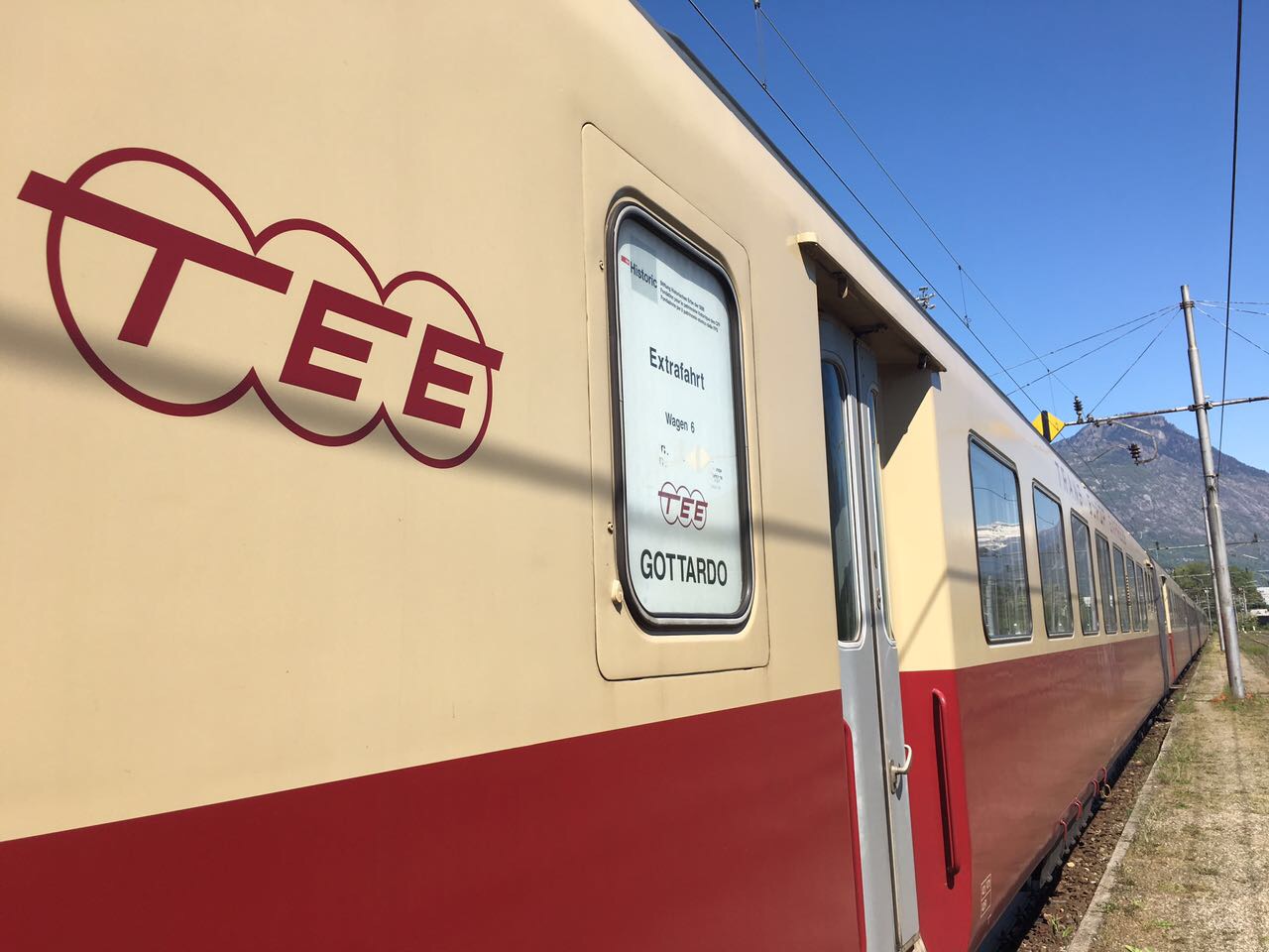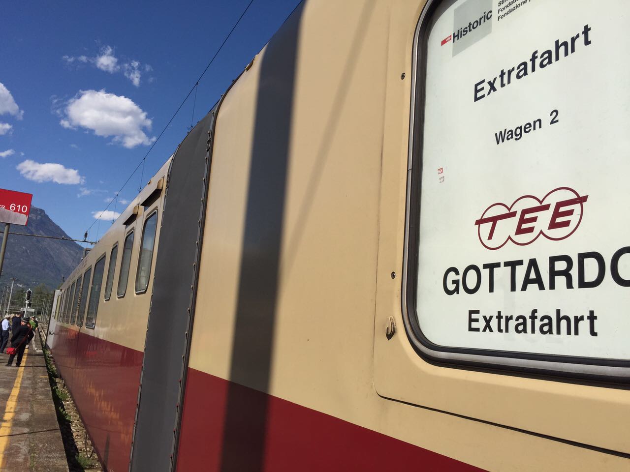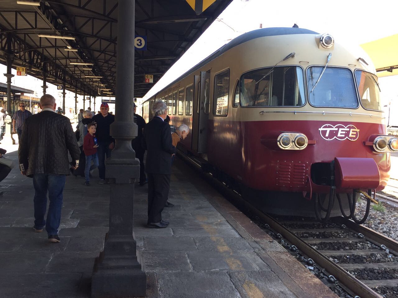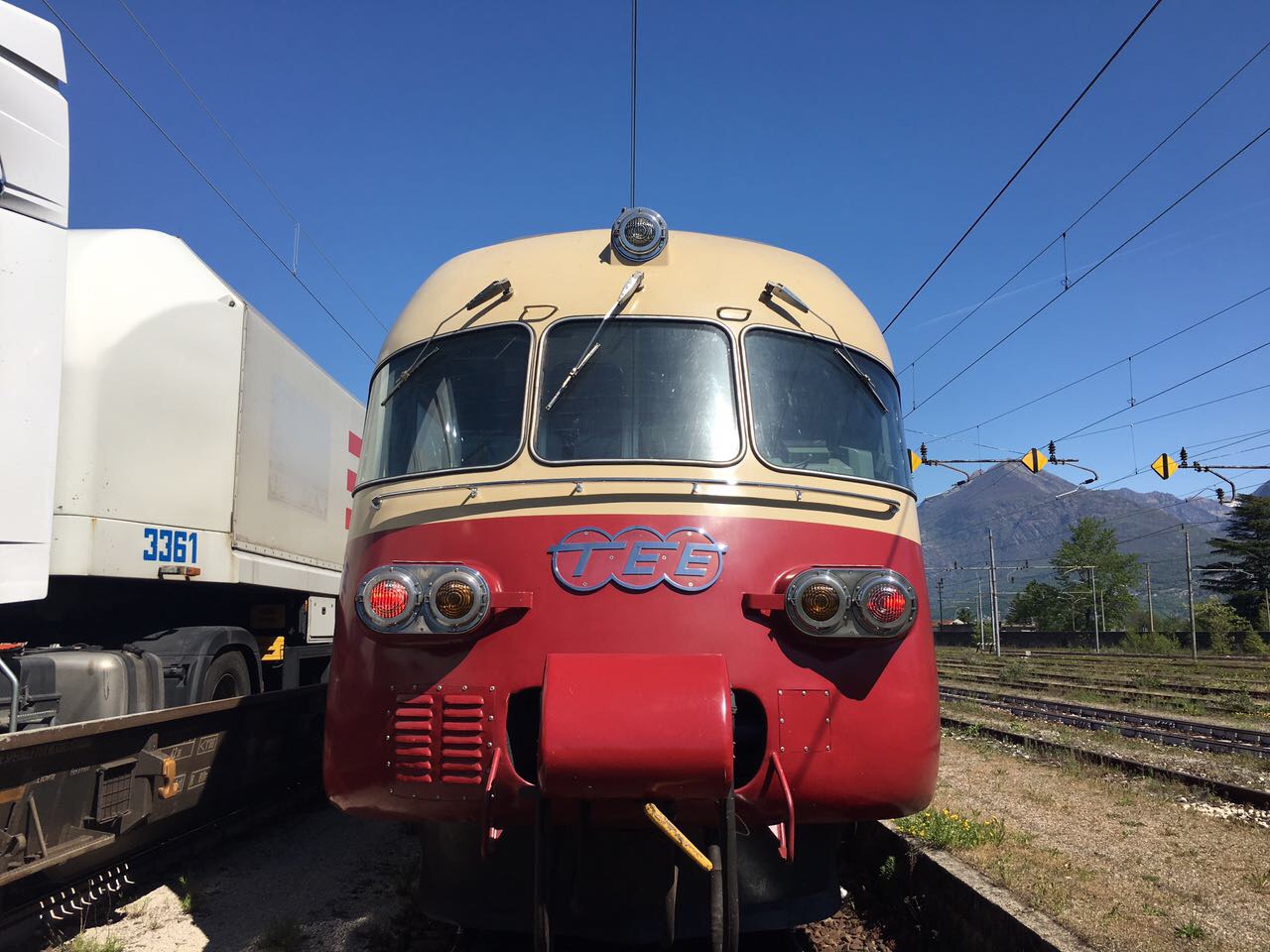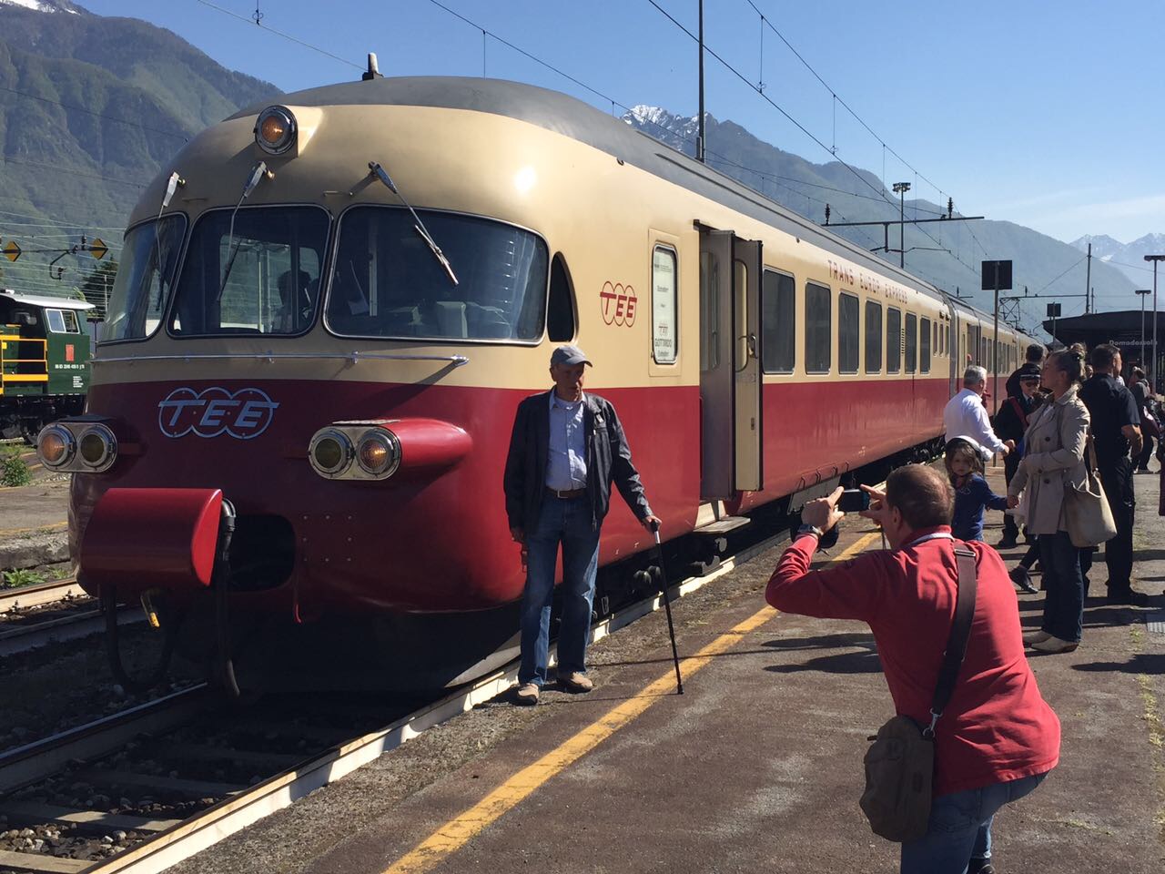 DOMODOSSOLA- 22-04-2017- Il Tee, Trans Europ Express ''Cisalpino'' in servizio nella tratta Milano - nord Europa è arrivato stamane in stazione a Domo. Si tratta di un convoglio d’epoca con materiale rotabile tutto francese, il Tee Lemano che espletava servizio fra Milano e Ginevra che ha percorso per un viaggio promozionale l’antica tratta Olten-Bern-Domodossola e ritorno, in occasione dei festeggiamenti dei 60 anni del Tee. Durante le recenti feste pasquali la “Fondazione FS italiane”, l’Ente ufficiale depositario della memoria storica ferroviaria italiana, aveva celebrato il treno internazionale Trans Europ Express ''Cisalpino'' in servizio nella tratta Milano/Parigi, il moderno Tee a trazione elettrica aveva preso il posto del mitico convoglio a vapore che aveva collegato Londra con Istanbul dal tempo della “Bella Epoqué” e reso immortale da Agatha Crhristie. Il Tee del 1957 fu progettato dalla Oerlikon e dalle Ffs e rappresentò il primo convoglio quadritensione al mondo. Il Tee era un’eccellenza che soddisfaceva appieno la missione del circuito internazionale: per la prima volta un veicolo automotore a trazione elettrica poteva circolare sotto tutte, o quasi, le catenarie d'Europa accorciando la tempistica di viaggio tra gli stati membri: si potrebbe definire il primo treno d'Europa sotto tutti i punti di vista. Si spera che in futuro si riesca a riportare questo treno storico fino a Milano.