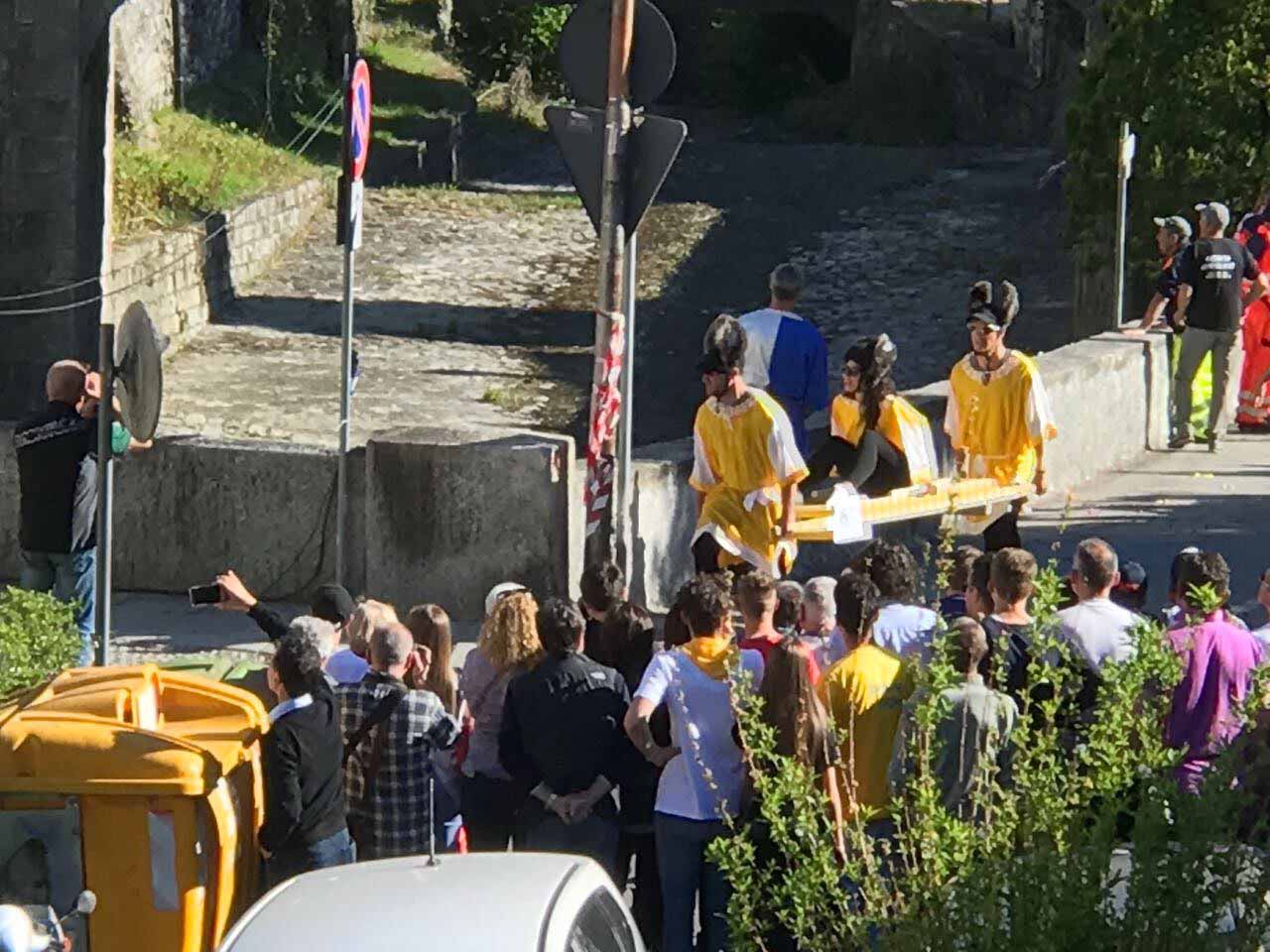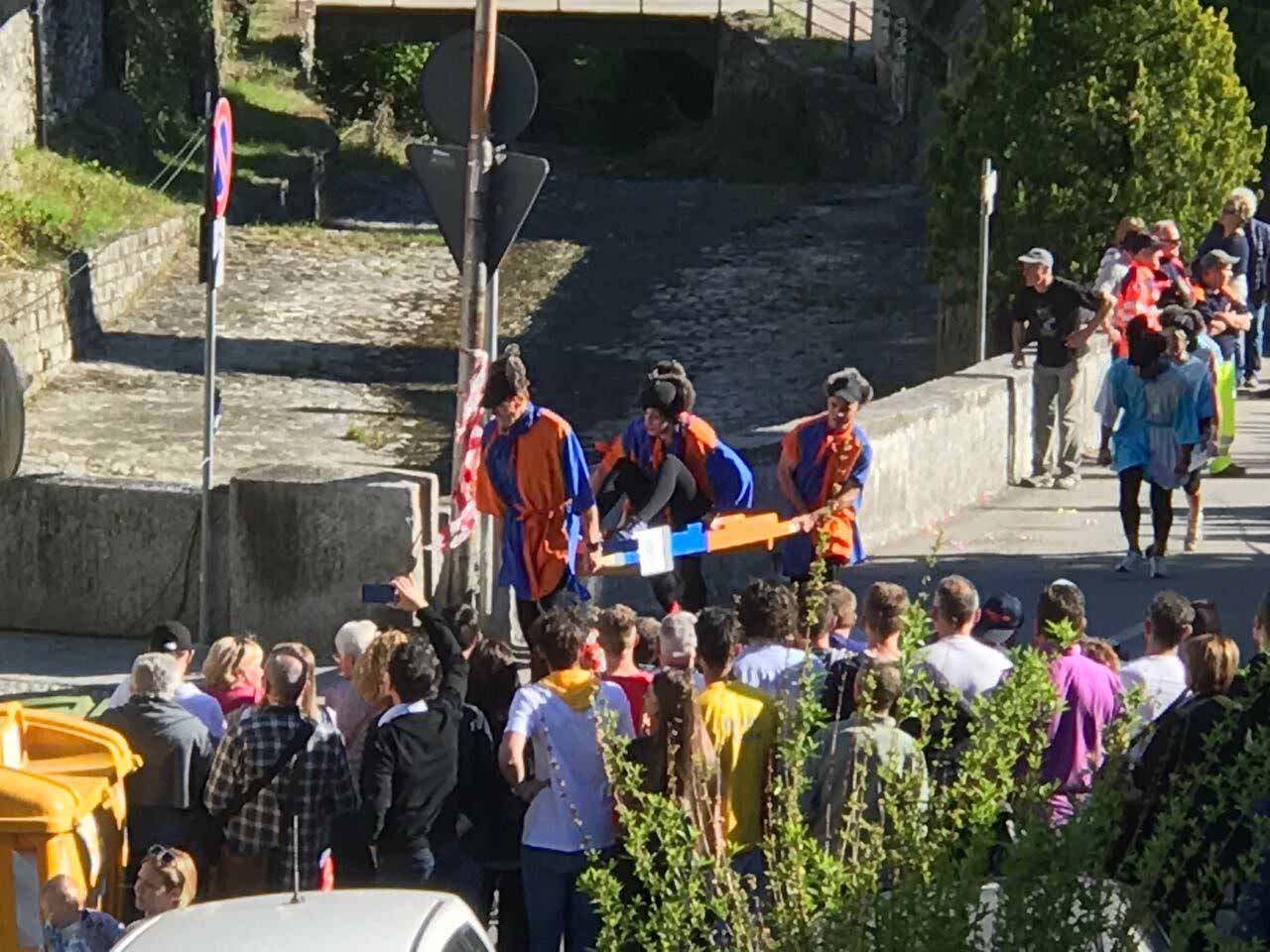 secondi, la squadra composta da Antongioli Elia, Arfang Pape, Borello Matteo, Diop Ousseynov, Rinaldi Stefano e Maurizio Minetti bissa così il successo dell'anno scorso. Tantissima la gente che ha deciso di assistere a questa edizione del palio, disputata sotto il sole e dopo la bellissima sfilata delle frazioni con le Majorettese. Ecco l'ordine d' arrivo completo: Bertonio, Alneda, Pasquè, Coggia, Piaggio. La frazione di Cattagna si è ritirata mentre le frazioni di Altreggiolo-Riceno, Castello, Fontana e Colla sono state squalificate per cambio irregolare ai box.
