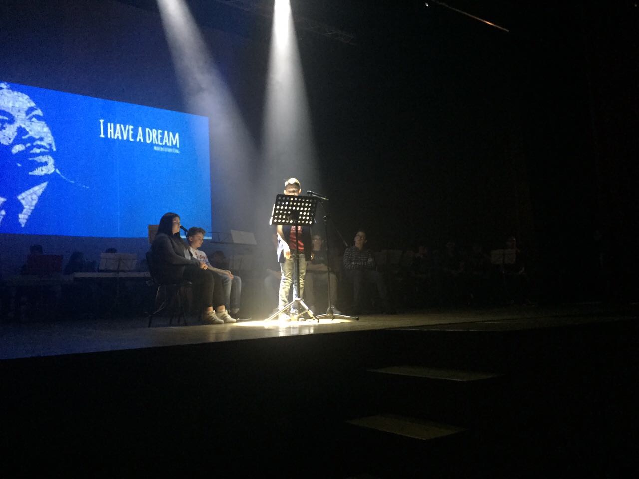 VILLADOSSOLA- 21-05-2017- Sabato sera alla Fabbrica l’I.C. Bagnolini ha deciso di riproporre, dopo il successo dello scorso anno, lo spettacolo “Musica in Scena”, coinvolgendo i ragazzi delle medie di Villadossola, Pieve Vergonte e Vanzone con San Carlo. La rappresentazione, ad entrata libera, si è svolta in due spettacoli, introdotti dal dirigente scolastico Francesco Suozzo, il primo alle ore 18 e il secondo alle ore 21. Il titolo dello spettacolo “I Have a Dream”, rimanda al celebre discorso tenuto da M. L. King ed a temi come i diritti civili, il futuro dei ragazzi ed i loro sogni. Nello spettacolo ci sono state alcune parti danzate, recitate e coreografiche, ed alcuni momenti musicali: “La preparazione dei brani orchestrali- spiegano dalla scuola- iniziata a dicembre, ha richiesto tempi lunghi, vista la collaborazione tra ragazzi di età, esperienze e preparazione diverse e nell’orchestra sono presenti anche due ex alunni. Il progetto è il risultato della collaborazione tra insegnanti e alunni e ha impegnato le classi dell’Istituto per diversi mesi nella volontà di rendere i ragazzi protagonisti e parte attiva dell’attività”.