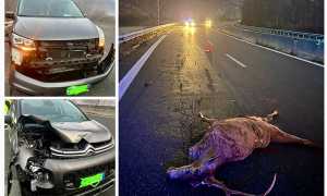 Incidente con un grosso cervo in superstrada. Quattro auto coinvolte, nessun ferito